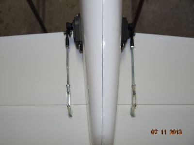Querruder mit doppelten Ruderhörnern, auch hier nochmal die Anlenkung über Hohlkehle gut zu sehen